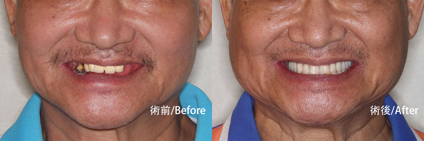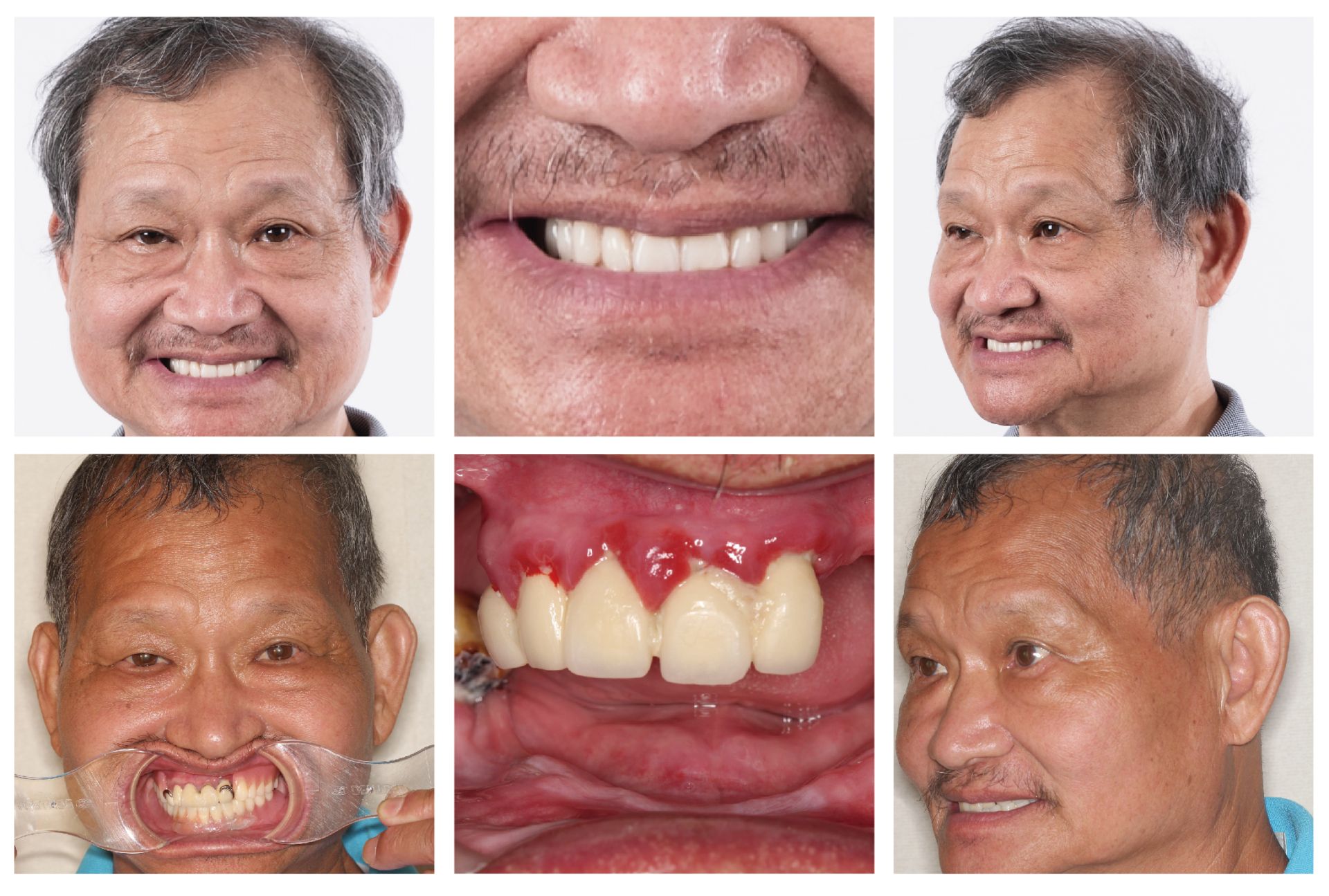 長期缺牙會導致下半臉部塌陷,看起來比實際年齡老上十歲,黃韻璇醫師在規劃過程中,不僅考慮牙齒的排列,更將大哥的發音、咀嚼習慣與臉部支撐納入考量,確保術後不僅能咬,更能笑得自然。